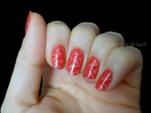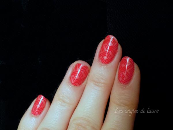 Histoire de cacher ma déception, j'ai fait un stamping avec la plaque BPL005 et le vernis spécial stamping Née Jolie. Ce sont vraiment les meilleurs vernis à stamping que je connaisse, je vous les recommande !